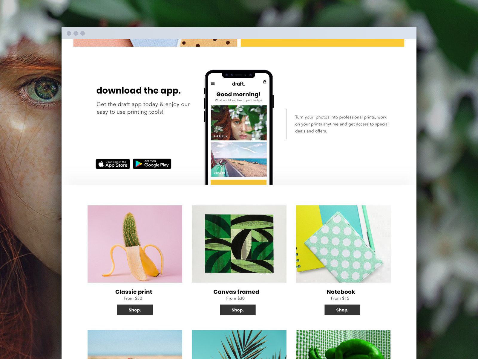 Draft is an application that allows you to print your Instagram, Facebook, mobile, and desktop photos. I was responsible for the UX, UI, and visual design of the Draft website, the printing tool, and the mobile app.