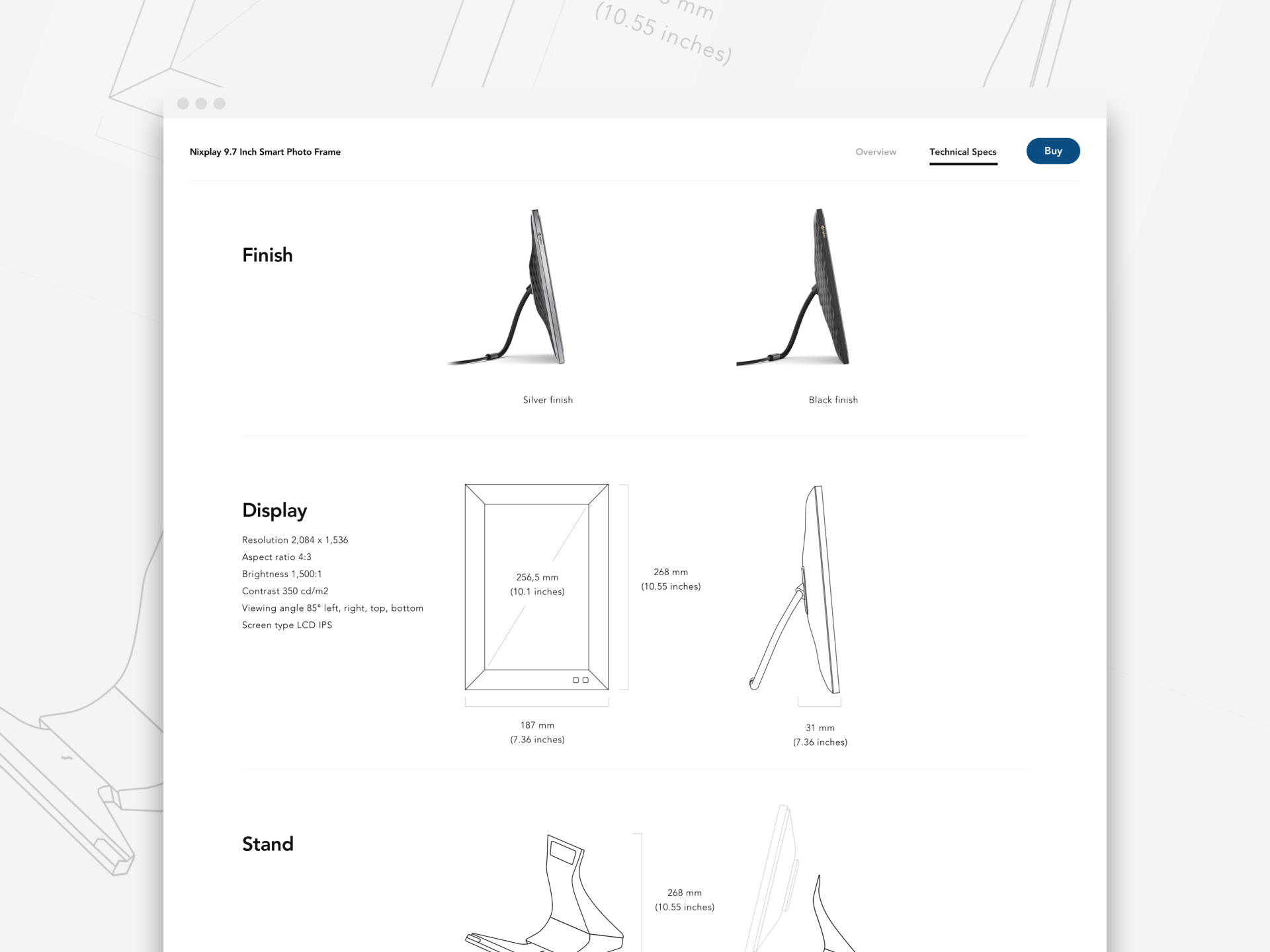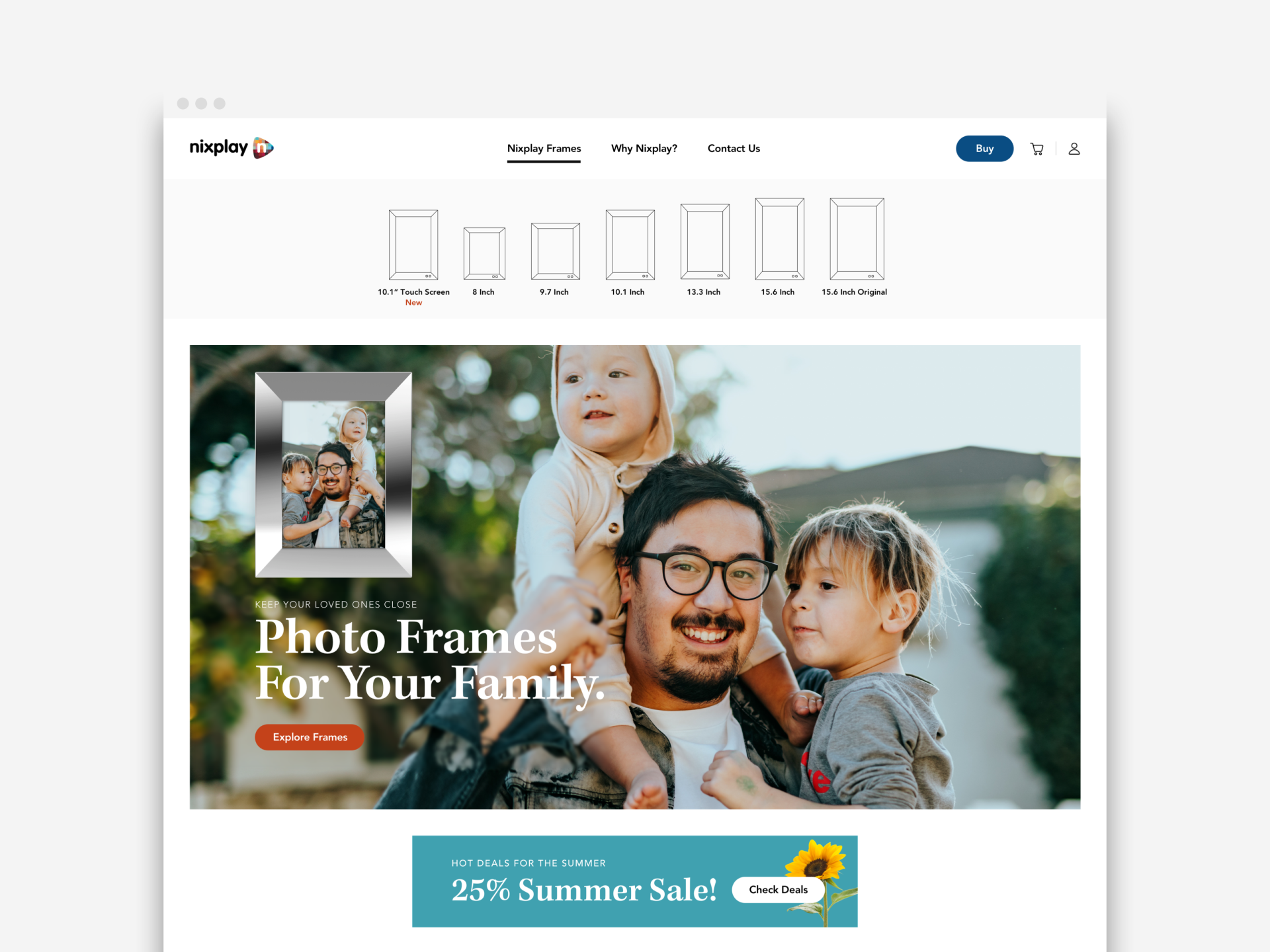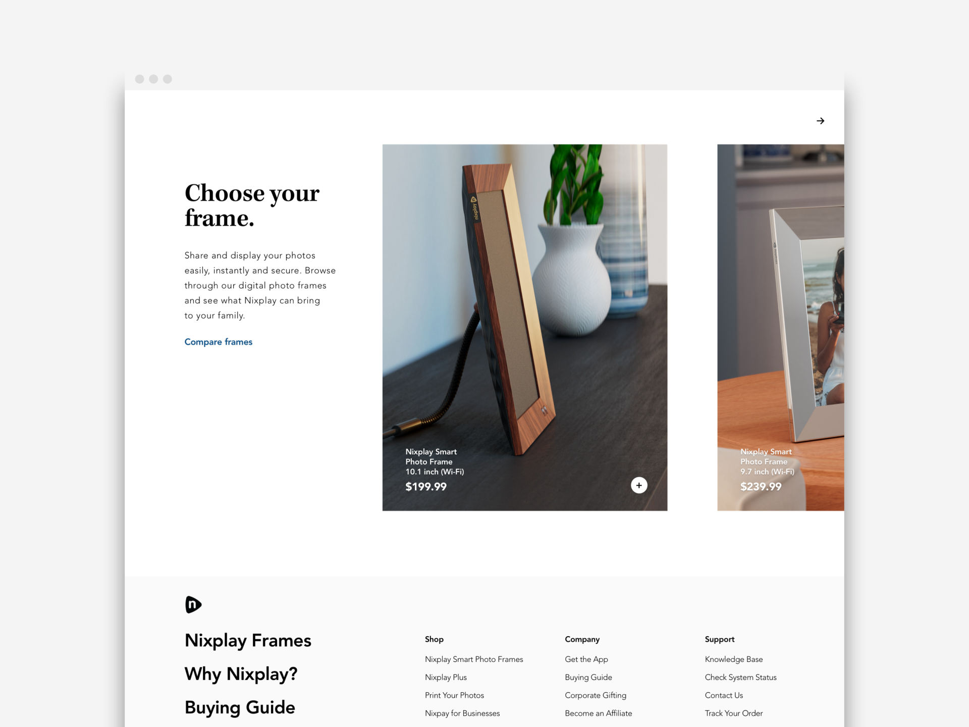 Nixplay is the industry leader of high-quality digital photo frames. For the launch of a range of new products, they needed a complete rebranding of their site. I was responsible of creating a new style guide with a set of fresh colors, and designing the site with a custom icon set, based on the new style. I was also responsible for the UI an UX of their new checkout process, and created a unique comparison tool from scratch.